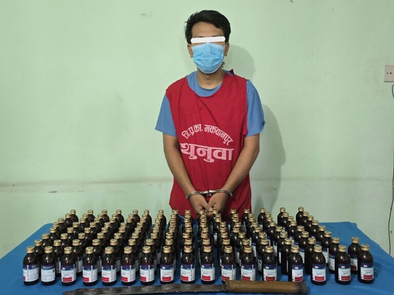 जिल्ला प्रहरी कार्यालय मकवानपुरबाट खटिएको प्रहरी टोलीले तामाङलाई डेराकोठामा फेला पारेर खानतलासी गर्ने क्रममा दराजभित्र झोलामा लुकाइराखेको अवस्थामा लागुऔषध अनरेक्स १ सय ३१ बोतल फेला परेको हो ।