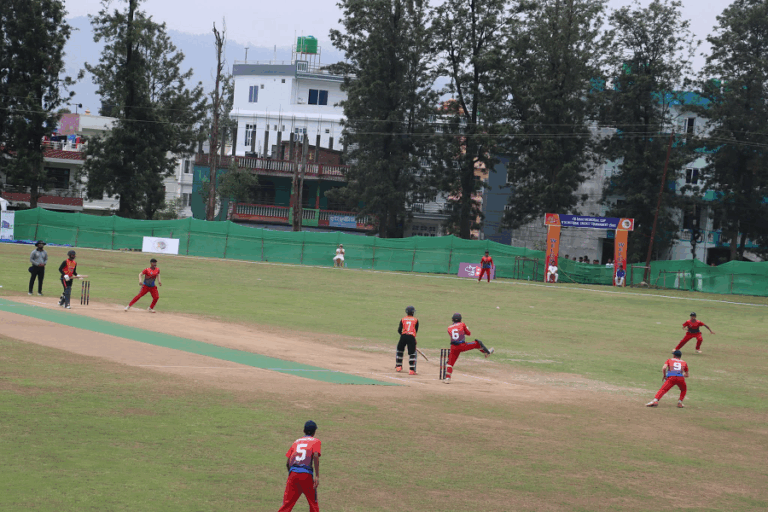 त्यसपछि एकैचौटी छैठौं नम्बरमा क्रिजमा आएका विजय बोहराले १५ र सातौं नम्बरमा क्रिजमा आएका विजय शाहीले १९ जोड्न बाहेक अरु कुनै ब्याटरले सन्तोषजनक प्रदर्शन गर्नसकेनन् ।