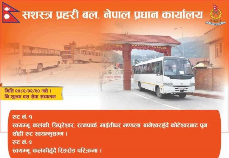 सवारी साधन बन्दका कारण सर्वसाधारण नागरिकहरुलाई गन्तव्य सम्म पुर्याउनको लागि सशस्त्र प्रहरी बल नेपालले निःशुल्क बस सेवा संचालन गरेको हो।