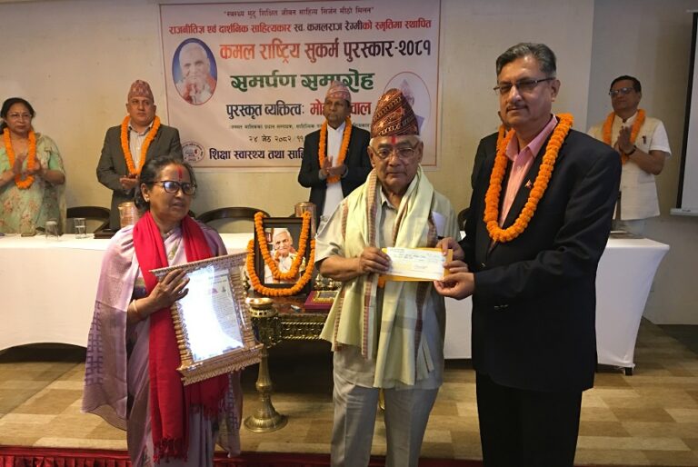 कमलराज रेग्मी राष्ट्रिय सुकर्म पुरस्कार ‘जनमत’का सम्पादक मोहन दुवाललाई प्रदान