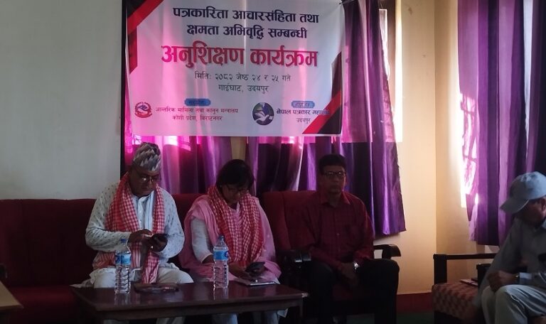 उदयपुरको गाईघाटमा शनिबारदेखि २ दिने पत्रकार आचार संहिता तथा क्षमता अभिवृद्धि सम्बन्धी अनुशिक्षण कार्यक्रम शुरु भएको छ ।
