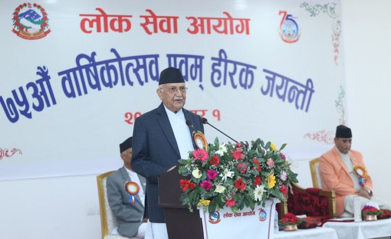 आयोगको हीरक जयन्तीका अवसरमा आज आयोजित कार्यक्रममा प्रधानमन्त्री ओलीले योग्यता, निष्पक्षता र स्वच्छता कायम गरी निजामती, सुरक्षा निकायलगायत संगठित संस्थामा पदपूर्तिका लागि आयोगले दिएको योगदानको प्रशंसा गरे ।