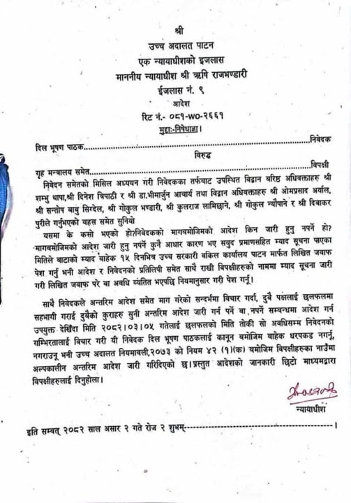 विद्युतीय कारोबार (साइबर क्राइम) मुद्दामा जारी भएको पक्राउ पुर्जी रोक्न माग गर्दै पत्रकार पाठक उच्च अदालत पाटन पुगेका थिए ।