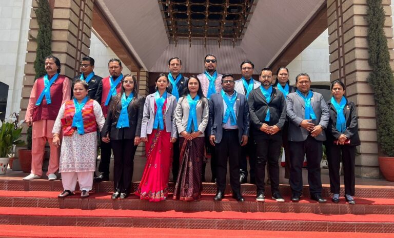 राष्ट्रिय स्वतन्त्र पार्टीका सांसद निलो टाई लगाएर संसद् भवन पुगेका छन् ।