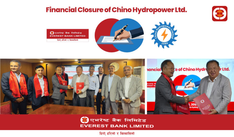 यस सम्बन्धमा आज आयोजित एक समारोहमा एभरेष्ट बैंक लिमिटेडका तर्फबाट प्रमुख कार्यकारी अधिकृत श्री सुदेश खालिङ र चिनो हाइड्रोपावर लिमिटेडका तर्फबाट अध्यक्ष श्री विजय बहादुर श्रेष्ठले सहमतिपत्रमा हस्ताक्षर गर्नुभएको हो ।
