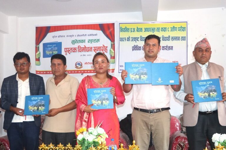 लोपोन्मुख सुरेल जातिको विगत र वर्तमान झल्कने फोटो पुस्तक ‘सुरेलका रङ्गहरु’ प्रकाशन गरिएको छ । दोलखाको गौरीशङ्कर गाउँपालिका वडा नम्बर– ५ सुरीमा मात्र रहेको लोपोन्मुख सुरेल जातिसम्बन्धी फोटो पुस्तक ‘सुरेलका रङ्गहरु’को प्रकाशन गौरीशङ्कर गाउँपालिकाले गरेको हो ।