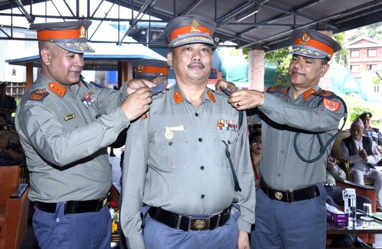 सशस्त्र प्रहरी महानिरीक्षक राजु अर्यालद्वारा दर्ज्यानी चिन्ह प्रदान