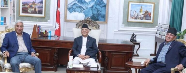 समसामयिक राजनीतिक विषयमा छलफल गर्न नेकपा (एमाले) का अध्यक्ष एवम् प्रधानमन्त्री केपी शर्मा ओलीसहित प्रमुख तीन दलका शीर्ष नेताको बैठक बस्दै छ ।