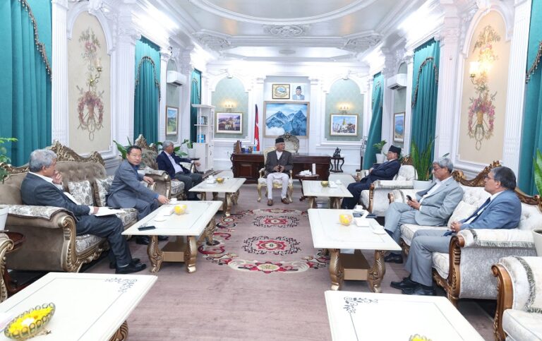 प्रमुख तीन दलका शीर्ष नेताहरूको बैठक सुरु भएको छ । प्रधानमन्त्री तथा मन्त्रीपरिषदको कार्यालय, सिंहदरबारमा उक्त बैठक सुरु भएको हो ।