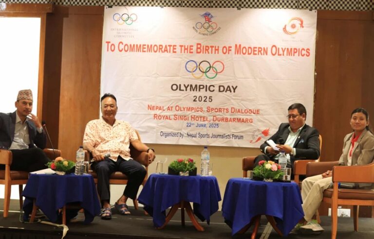 नेपाल खेलकुद पत्रकार मञ्च (एनएसजेफ) ले ओलम्पिक दिवसको अवसरमा आइतबार ओलम्पिकमा नेपालको सहभागिता विषयमा आयोजना गरेको ‘’स्पोर्ट्स डायलग’ एनओसी अध्यक्ष श्रेष्ठले सो प्रस्ताव राखेका हुन् । उनले भने –”नेपाली खेलकुदको समस्या सदाका लागि समाधान गर्ने हो भने सरकार र ओलम्पिक कमिटी बसेर गाइडलाइन तयार गरौँ । खेलकुद मन्त्रालय, राखेप, ओलम्पिक कमिटी र राष्ट्रिय खेल संघहरुले गर्ने कामको स्पष्ट खाका बनाउँ। यसो भएमा प्रत्येक निकायको कर्तव्य र जिम्मेवारी स्पष्ट हुनेछ। कसैको कोही प्रति आग्रह पूर्वाग्रह हुनेछैन।”
