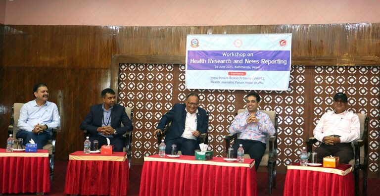 ‘स्वास्थ्य अनुसन्धान र समाचार रिपोर्टिङ’ विषयक एक दिने कार्यशाला सम्पन्न भएको छ । स्वास्थ्य पत्रकारहरुको क्षमता अभिवृद्धिको लागि नेपाल स्वास्थ्य अनुसन्धान परिषद् (एनएचआरसी) र स्वास्थ्य पत्रकार मञ्च, नेपाल (एचजेएफएन)को संयुक्त आयोजनामा बिहीबार काठमाडौंमा कार्यशाला तथा तालिम आयोजना गरिएको हो ।