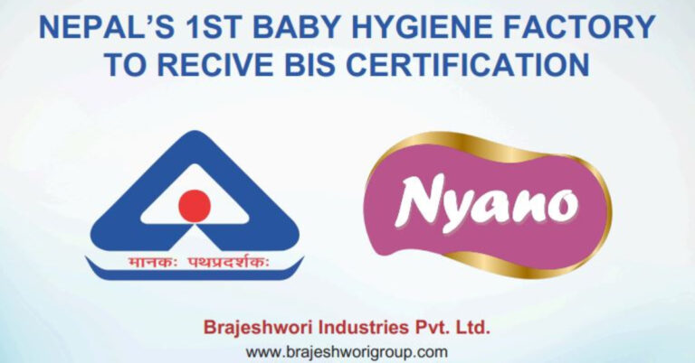 नेपालको अग्रणी हाइजिन तथा शिशु डायपर निर्माता कम्पनी ब्रजेश्वरी इन्डस्ट्रिज प्रा.लि.ले भारतीय मानक ब्यूरो (बीआईएस)को प्रमाणपत्र प्राप्त गरेको छ । यससँगै ब्रजेश्वरी इन्डस्ट्रिज यो उपलब्धि हासिल गर्ने पहिलो नेपाली बेबी हाइजिन निर्माता कम्पनी बनेको छ ।