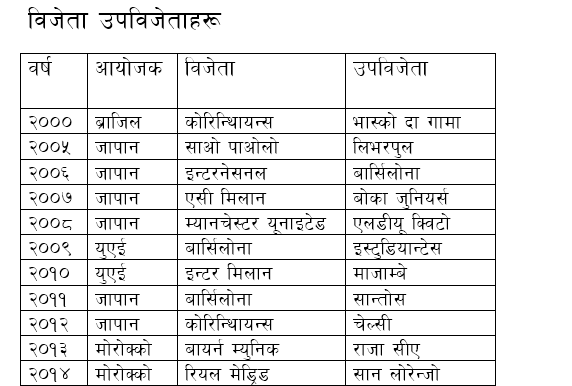 -हालसम्म गरी २१ संस्करण आयोजना हुँदा जापानमा ८ पटक, यूएईमा ५ पटक, कतारमा २ पटक र साउदी अरेबियामा एक पटक गरी एसियामा १६ पटक आयोजना भएको छ ।