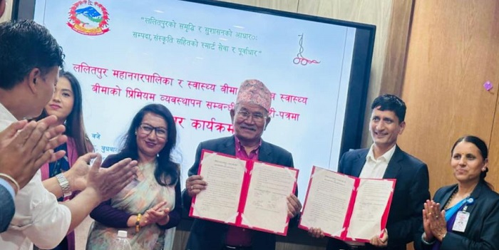 ललितपुर महानगरपालिकाले महानगरबासीको स्वास्थ्य बीमाको ४० प्रतिशत प्रिमियम व्यहोर्ने भएको छ। महानगर र राष्ट्रिय बीमा बोर्डबीच प्रिमियम तिर्ने सम्झौता पत्रमा हस्ताक्षर भएको हो।