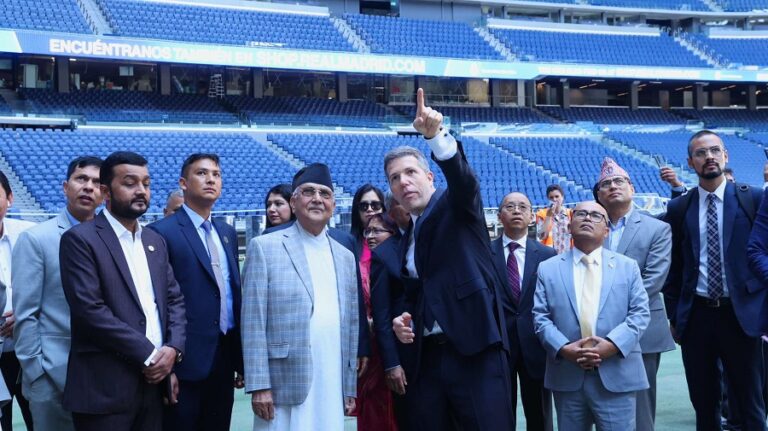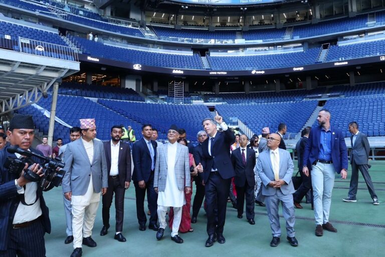 प्रधानमन्त्री केपी शर्मा ओलीले स्पेनको मेड्रिडस्थित विश्व प्रसिद्ध फुटबल क्लव रियल मेड्रिडको सान्टियागो बर्नाबाउ रंगशालाको आज भ्रमण भर्मन गरेका छन् । प्रधानमन्त्री ओलीलाई क्लवका अन्तर्राष्ट्रिय निर्देशक पेद्रो मार्टिन दे मिगेलले स्वागतससिहत अत्याधुनिक रंगशालाको भ्रमण गराएका थिए ।