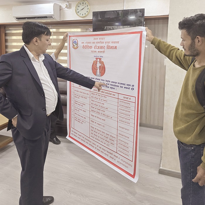 यसै गरी विभागले दिने सेवालगायतका समग्र विषयमा जानकारी लिन उपमहानिर्देशक तथा प्रवक्ता चन्द्रबहादुर शिवाकोटीको ९८५१३४२३९२ लाई सम्पर्क गर्न सकिने गरी व्यवस्था मिलाइएको छ ।विभागमा महानिर्देशकको रूपमा कमलप्रसाद भट्टराई आएपछि उहाँले विभागलाई बिचौलियामुक्त क्षेत्र घोषणा गर्नुका साथै श्रम स्वीकृति प्रदान गर्नेलगायतका अधिकाश सेवाहरूमा व्यापक सुधार गर्दै अनलाइनबाट प्रदान गर्ने व्यवस्था मिलाउनुभएको छ । महानिर्देशक भट्टराईले बुधबारमात्रै विभागमा बिचौलिया निषेधित गरिएको सन्देश जाने गरी नयाँ बोर्ड राख्नुभएको छ ।