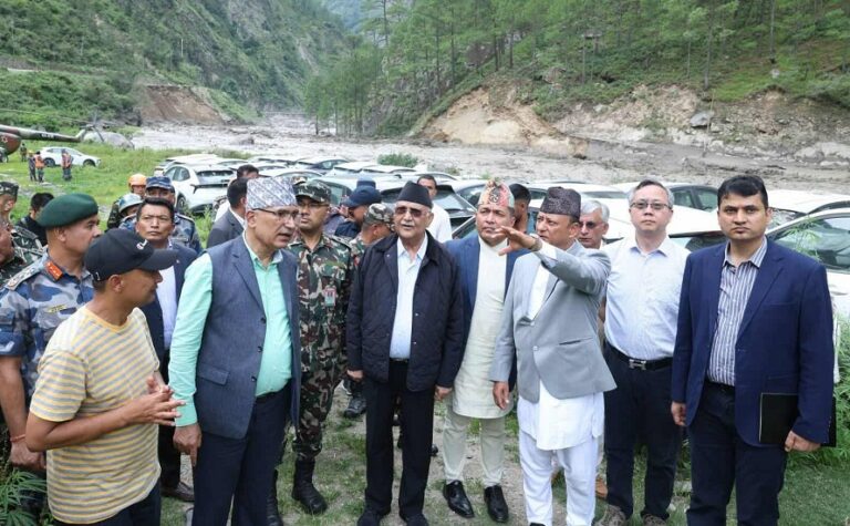 प्रधानमन्त्री ओलीबाट रसुवा र नुवाकोटको बाढी प्रभावित क्षेत्रको अवलोकन