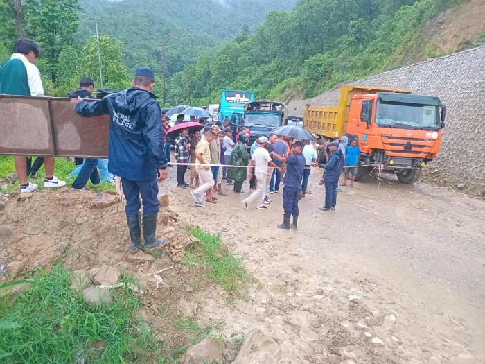 जिल्ला प्रहरी कार्यालयका डीएसपी वीरदत्त पन्तका अनुसार पूर्वतर्फ जाने सवारी साधनहरू बर्दघाटको टिसिएनचोकमा र पश्चिमतर्फ जानेहरू दुम्किबासमा रोकिएका छन्।