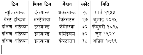 टेस्ट क्रिकेटमा न्युनतम स्कोर