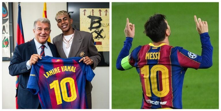 स्पेनिस फुटबल क्लब एफसी बार्सिलोनामा कुनैबेला अर्जेन्टिनी लेजेन्ड लियोनेल मेसीले लगाउने गरेको आदर्श १० नम्बरको जर्सी अब युवा प्रतिभा लामिन यामलले लगाउने भएका छन ।