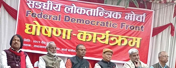 संघीय लोकतान्त्रिक मोर्चाले ‘वर्तमान राजनीतिक अवस्थाबारे जनजागरण अभियान’ आजदेखि सुरु गरेको छ। जनता समाजवादी पार्टी (जसपा) नेपालका अनुसार अभियान काठमाडौँको कालिकास्थानबाट सुरु भएको हो।