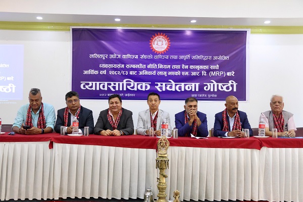 सो अवसरमा ललितपुर उद्योग वाणिज्य संघका अध्यक्ष विश्वराज बज्राचार्यले ऐन, नियमको विषयमा जानकारी नभएका कारण व्यवसायीहरु डराइरहेको बताउँदै भन्नुभयो–‘ कानुनको पालना गर्ने हो भनेर व्यवसायीले निर्धक भएर व्यवसाय गर्न सक्छ।’ ललितपुर उद्योग वाणिज्य संघको वाणिज्य तथा आपूर्ति समितिले आयोजना गरेको व्यवसायसंग सम्बन्धित नीति नियमबारे अन्तरक्रिया कार्यक्रममा अध्यक्ष बज्राचार्यले व्यवसायी सम्बन्धी ऐन, कानुनका विषयमा मात्र व्यवसायीहरु सचेत भएर मात्र नपुग्ने तथा कानुन निर्माणको पक्रियामा पनि थप सचेतनाको खाँचो औल्याउनुभयो।