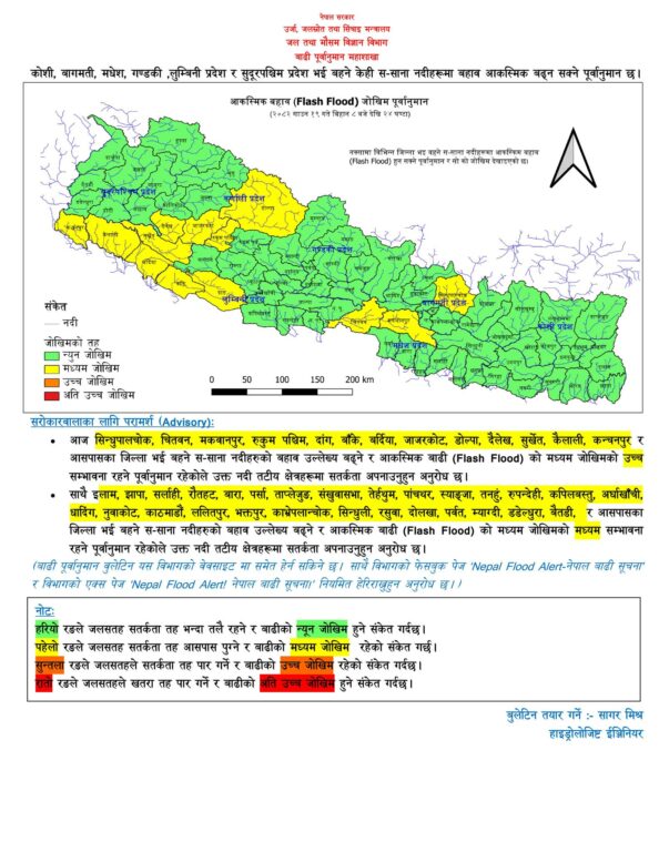 बाढी जोखिमबाट सतर्क रहन सम्बन्धित सबैलाई आग्रह गरिएको छ।