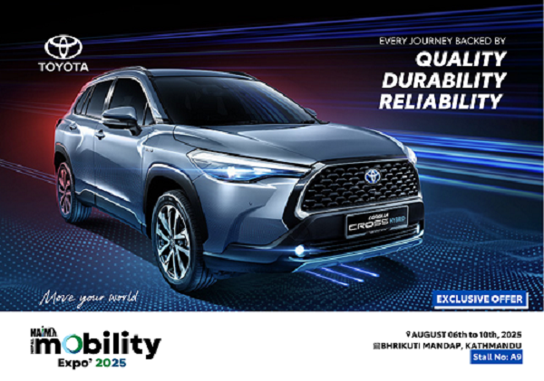 साउन २१ देखि २५ गतेसम्म काठमाडौंको भृकुटीमण्डपमा आयोजना हुने उक्त एक्स्पोमा सहभागी हुँदै कम्पनीले टोयोटाका तीन लोकप्रिय मोडलहरू ‘यारिस क्रस हाइब्रिड इलेक्ट्रिक’, ‘ल्यान्ड क्रुजर २५०’ लगायतका सवारीसाधनहरू प्रदर्शनमा राख्नेछ।