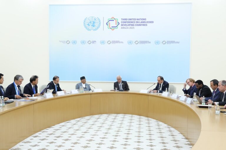 तुर्कमेनिस्तानको आवाजामा जारी भूपरिवेष्टित विकासशील राष्ट्रहरू (एलएलडिसी) को तेस्रो संयुक्त राष्ट्रसङ्घीय सम्मेलनको ‘व्यापार तथा यातायात सम्पर्क विस्तार मार्फत क्षेत्रीय सुरक्षा र सहयोगको प्रवद्र्धन’ विषयक साइड इभेन्टमा प्रधानमन्त्री ओलीले भूपरिवेष्टित राष्ट्रहरू विकल्पले नभई बाध्यताले अलग हुन विवश भएको बताए ।