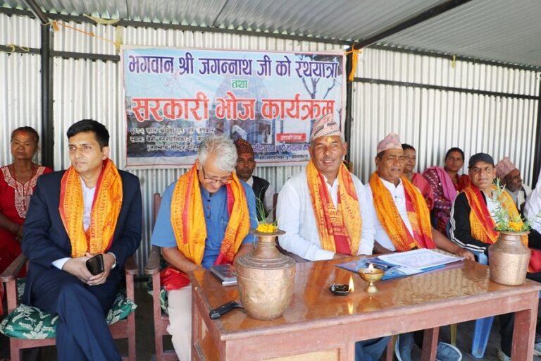 जगन्नाथ मन्दिर (धाम) गुठी सञ्चालन तथा व्यवस्थापन समितिको आयोजनामा श्रावण शुक्लपक्ष द्वादशी तिथिको अवसर पारेर बुधवार रथयात्रा गरिएको छ । जगन्नाथ मन्दिरमा कार्यक्रमका अतिथि, गुठी व्यवस्थापन समितिका पदाधिकारी, सदस्यहरु, मन्दिरका पुजारी, सहभागी भक्तजनहरु, स्थानीयवासी, सर्वसाधारण लगायतले भजनकीर्तन गर्नुका साथै भगवान् जगन्नाथलाई काँधमा बोकेर रथयात्रा गरेका थिए ।