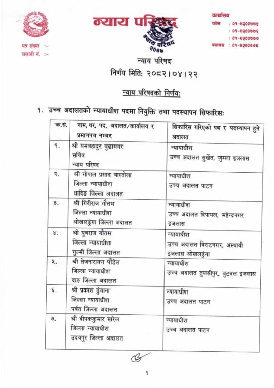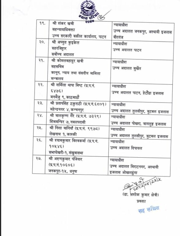 न्याय परिषद्ले उच्च अदालतका लागि रिक्त पदहरूमा २७ जना न्यायाधीश नियुक्तिका लागि सिफारिस गरेको छ।