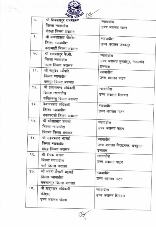 सिफारिस गरिएका अधिकांश व्यक्ति हाल जिल्ला अदालतमा कार्यरत न्यायाधीश हुन्।