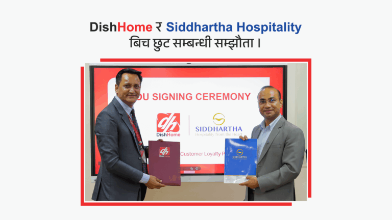 डिसहोमले हस्पिटालिटी समूह सिद्धार्थ हस्पिटालिटीसँग आधिकारिक सम्झौता गर्दै डिशहोमका सबै सक्रिय ग्राहकलाई भर्चुअल प्रिभिलेज कार्ड मार्फत विशेष छुट र सुविधा प्रदान गर्ने भएको छ ।