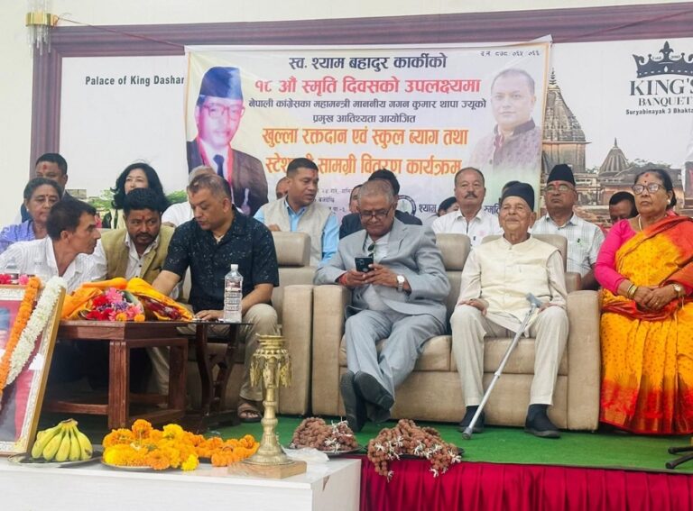 आज भक्तपुरमा आयोजित स्व. श्यामबहादुर कार्कीको १८औं स्मृति सभामा बोल्दै महामन्त्री थापाले कांग्रेसले आफूलाई फर्केर समीक्षा गर्दै अगि बढ्नुपर्ने बताए ।आत्मविश्वास हराएको पार्टीले देश सम्हाल्न नसक्ने बताउँदै देश चलाउने प्रमुख शक्ति कांग्रेस पार्टी रहेको बताए ।