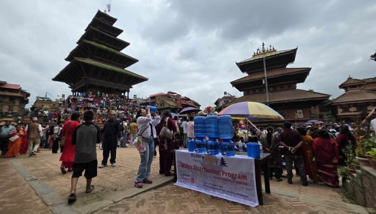 रोटरी न्यातपोलका अध्यक्ष विष्णुकान्त घिमिरेले भने, ” यस वर्ष दुई हजार लिटर पानी वितरण भइरहेको छ, आवश्यक परेमा थप पानी ल्याउने छौँ ।”