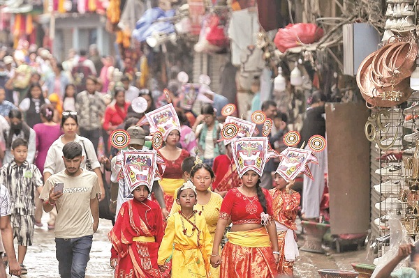 गाईजात्राको रौनक : राजधानीको वसन्तपुरमा गाईजात्रा पर्व मनाइएको छ । आठ दिनसम्म चल्ने यो सांस्कृतिक पर्व एक वर्षभित्र दिवंगत भएका आफन्तको सम्झनामा, गाई वा मानिसलाई गाईका रूपमा सजाएर नगर परिक्रमा गराउने परम्परा छ । आइतबार विशेष गरी काठमाडौँ उपत्यकामा, रङ्गीन झाँकी, व्यङ्ग्य, नाचगान र हास्यप्रद कार्यक्रमसहित गाईजात्रा पर्व मनाइँदै छ । तस्वीर : अनिल आङदेम्बे ।