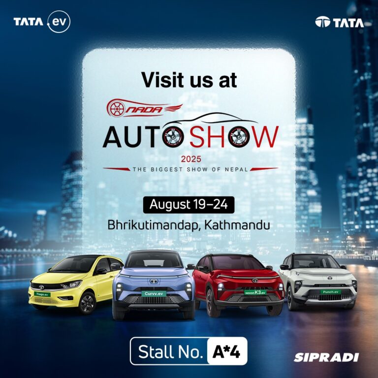 टाटा.इभीको नेपालस्थित एक मात्र आधिकारिक विक्रेता सिप्रदी ट्रेडिंग प्रा लि. यसपटक विशेष तयारीसहित सहभागी हुँदैछ । स्टल आ४८ मा अवस्थित टाटाको डिस्प्लेमा टियागो ईभी, पन्च ईभी, नेक्सन के ३ ईभी र कर्भ ईभीजस्ता लोकप्रिय विद्युतीय गाडीहरु प्रदर्शन हुनेछन् । प्रदर्शनी अवधिभर टाटाले एक्सक्लुसिभ अफर, सजिलो फाइनान्स योजना र विशेष उपहारहरु उपलब्ध गराउनेछ ।