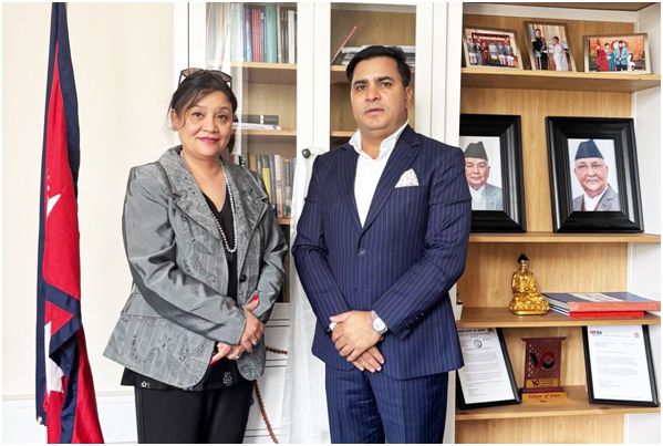 सिटी एक्सप्रेस मनि ट्रान्सफरका संस्थापक, ग्लोबल बिजिनेस तथा डायस्पोरा समिती (सिएनआइ)का सभापति, तथा नेपालका लागि केन्याका अवैतनिक वाणिज्य दूत चन्द्र टण्डन र डेन्मार्कस्थित नेपाली राजदूत महामहिम सुम्निमा तुलाधरबीच भेटवार्ता भएको छ ।