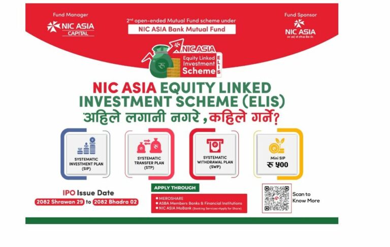 एनआईसी एशिया क्यापिटल लिमिटेडले “एन आई सी एशिया इक्वीटी लिङ्कड इन्भेष्टमेण्ट स्किम” संचालन गर्ने भएको छ । यो दोश्रो खुलामुखी योजना हो ।