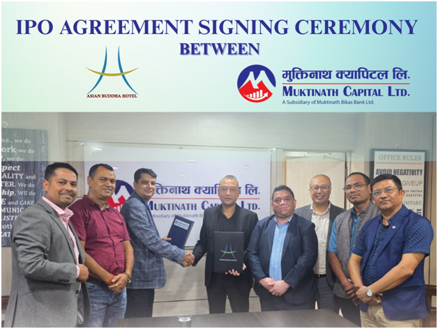 शेयर निष्काशन प्रक्रिया अघि बढाउन मुक्तिनाथ क्यापिटल लिमिटेडलाई विक्री प्रबन्धकको रुपमा नियुक्त गरिएको छ । यसै सन्दर्भमा, आयोजित एक औपचारिक कार्यक्रममा होटल एशियनको तर्फबाट अध्यक्ष पारस अधिकारी र मुक्तिनाथ क्यापिटलको तर्फबाट प्रमुख कार्यकारी अधिकृत कबिन्द्र ध्वज जोशीले सम्झौता पत्रमा हस्ताक्षर गरेका छन् ।