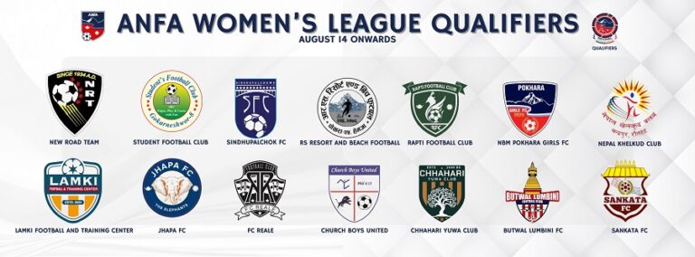 अखिल नेपाल फुटबल सङ्घ (एन्फा) महिला लिग छनोटमा आज ४ टोली भिडदैँछन् । आजको पहिलो खेलमा राप्ती एएफसी र सिन्धुपाल्चोक रिसोर्ट एन्ड बिच फुटबल बिचमा पहिलो खेल हुदैँछ । जुन खेल अपरान्ह १२ः३० बजेबाट सुरु हुनेछ ।