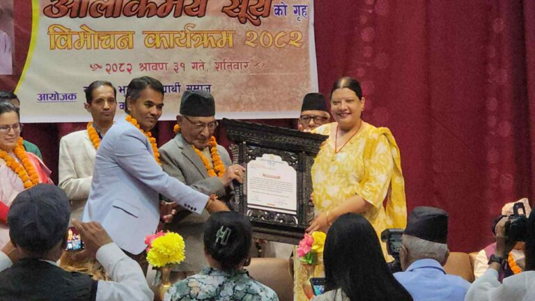 साहित्यिक सिर्जना, साहित्य अभियान, पत्रकारिता र संस्कृतिका क्षेत्रमा समर्पित साहित्यकार सूर्यप्रसाद लाकोेजुको ‘आलोकमय सूर्य’ नामक कृतिको भव्य रूपमा गृह विमोचन गरिएको छ । शनिबार सम्पन्न कार्यक्रममा वरिष्ठ साहित्यकार, संस्कृतिविद् र अनुसन्धानकर्ताहरूले लेखक लाकोेजुको व्यक्तित्व तथा साहित्यिक योगदानबारे भावनात्मक रुपमा चर्चा गरे । उक्त ग्रन्थलाई संस्कृति शिरोमणि हरिराम जोशीले विमोचन गर्दै सूर्यप्रसाद लाकोेजुलाई पनौतीकै ‘सूर्य’को उपमा दिए । उनले लाकोेजु असाधारण प्रतिभाका धनी व्यक्तित्व भएको बताउँदै मातृभूमिप्रति उनले गरेको समर्पण अतुलनीय रहेको उल्लेख गरे । साथै सूर्यको साहित्यिक उज्यालो नेपालको भूगोलभन्दा परसम्म फैलिएको बताए । वरिष्ठ समालोचक गोविन्दराज भट्टराई र प्राध्यापक एवं समालोचक ज्ञानु अधिकारीले विमोचित कृतिले लाकोेजुको बहुआयामिक प्रतिभा उजागर गरेको बताए ।