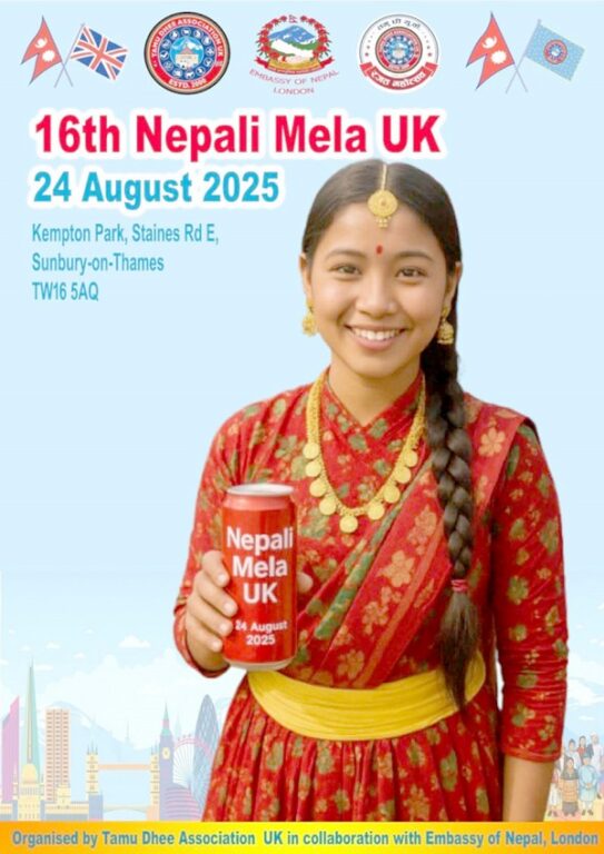 अगस्ट २४ आइतबार लण्डनको केम्पटन पार्कमा बिहान १० बजेदेखि साँझ ६ बजेसम्म ‘नेपाली मेला–२०२५’ हुने आयोजक तमुधि यूकेले जानकारी दिएको छ । नेपाली मेलामा मुख्य अतिथिमा बेलायतका लागि नेपाली राजदूत चन्द्रकुमार घिमिरे र विशेष अतिथिमा नेपाल विद्युत् प्राधिकरणका पूर्वकार्यकारी निर्देशक कुलमान घिसिङलाई आमन्त्रित गरिएको छ ।