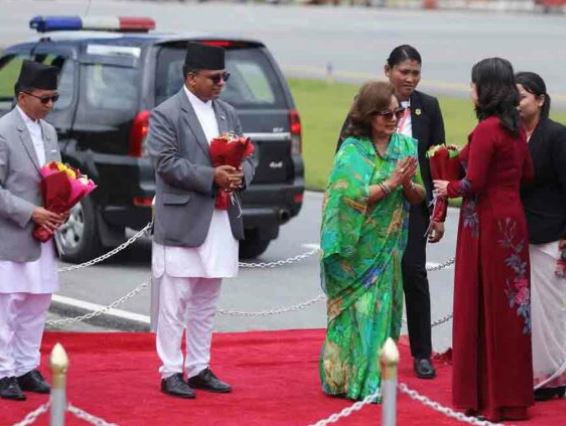 उनी उपराष्ट्रपति रामसहायप्रसाद यादवको निमन्त्रणामा नेपाल आएकी हुन्। त्रिभुवन अन्तर्राष्ट्रिय विमानस्थलमा परराष्ट्रमन्त्री डा. आरजु राणा देउवा र पर्यटनमन्त्री बद्रीप्रसाद पाण्डेले उनलाई स्वागत गरे।