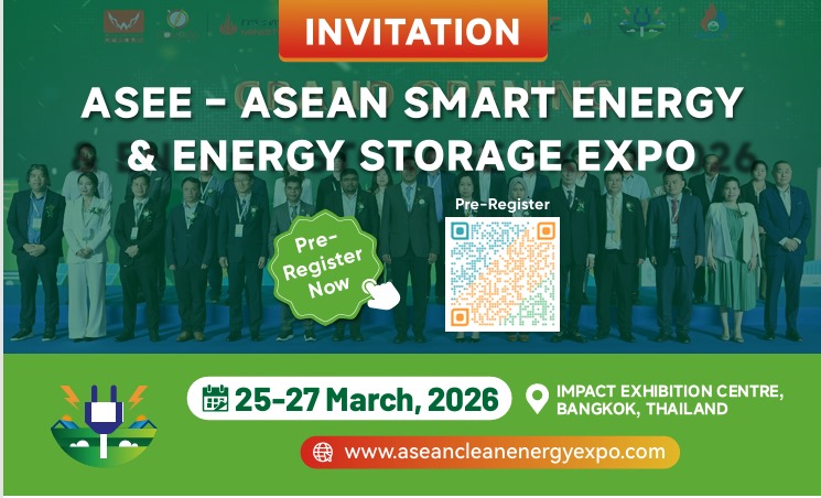 आगामी मार्च २५ देखि २७ सम्म थाइल्यान्डको राजधानी बैंककमा ‘आसियान स्मार्ट इनर्जी एन्ड इनर्जी स्टोरेज एक्स्पो २०२६’ (एएसईई–२०२६) आयोजना हुने भएको छ । कम्पास एक्जिविसन कम्पनी लिमिटेड र ग्वाङडोङ ग्रान्ड्युर इन्टरनेशनल एक्जिविसन ग्रुपले संयुक्त रूपमा आयोजना गर्न लागेको यस प्रदर्शनीलाई थाइल्यान्डको ऊर्जा मन्त्रालय, थाइल्यान्ड कन्भेन्सन एन्ड एक्जिविसन ब्युरो -टीसीईबी_लगायत विभिन्न अन्तर्राष्ट्रिय ऊर्जा संघसंस्थाले सहयोग गर्नेछन् ।