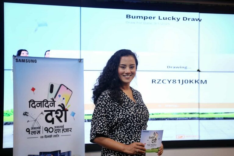 सामसङ कम्पनीले मोबाइल तथा ट्याबलेट खरिद गरी उपहार जित्ने दिनदिनै दशैं अफर पहिलो लक्की ड्र मार्फत १ लाख उपहार जित्नेको सिरियल नम्बर घोषणा गरेको छ ।