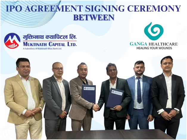 यसै सन्दर्भमा, विक्री प्रबन्धक मुक्तिनाथ क्यापिटलको कार्यालयमा आयोजित एक औपचारिक कार्यक्रममा गंगा हेल्थ केयर इण्डष्ट्रिजको तर्फबाट अध्यक्ष श्री सुरज प्रसाद खत्री र मुक्तिनाथ क्यापिटलको तर्फबाट प्रमुख कार्यकारी अधिकृत कबिन्द्र ध्वज जोशीले सम्झौतापत्रमा हस्ताक्षर गरेका छन् । कम्पनीले जारी पूँजीको ३० प्रतिशत साधारण शेयर सर्वसाधारणलाई निष्काशन गर्ने जनाएको छ ।