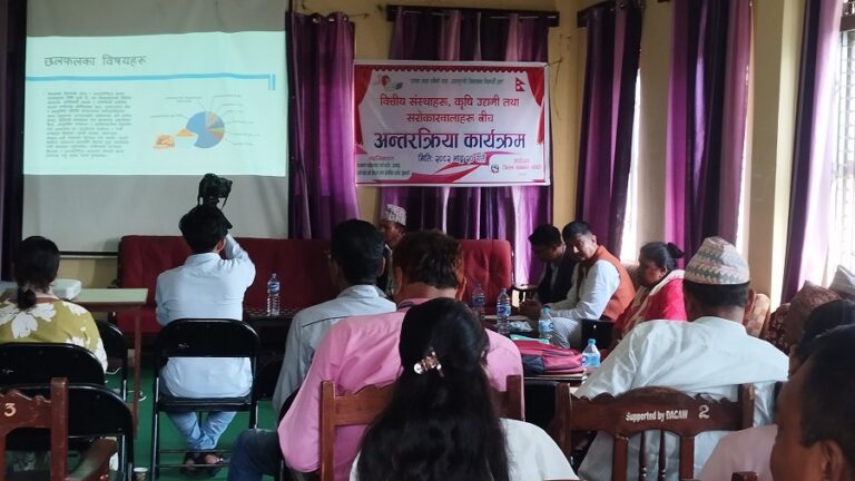 उदयपुरको गाईघाटमा शुक्रबार कृषि उद्यमको विकास तथा विस्तारकालागि वितिय संस्थाहरु, कृषि उद्यमी तथा सरोकारबालाहरु बिचमा अन्तरक्रिया कार्यक्रम सम्पन्न भएको छ ।
