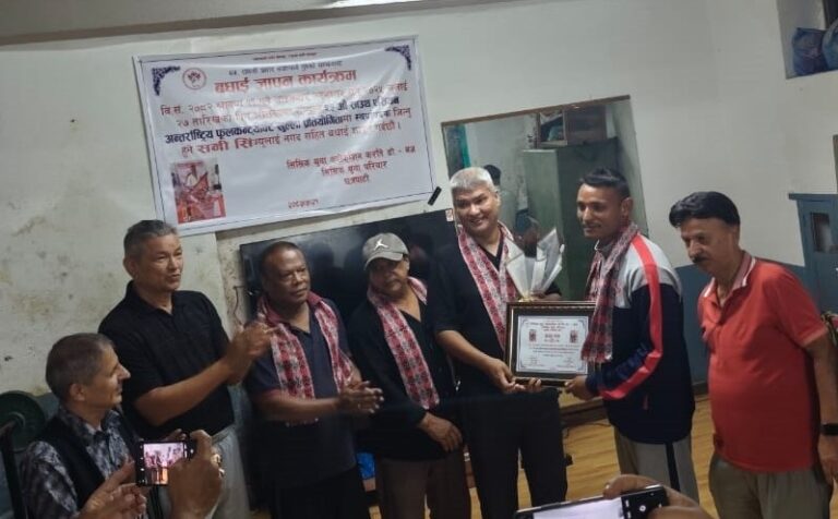 सिम्रिक युवा क्योकुसिन कराते डो– वज्रले २५ औं दक्षिण एसियाली अन्तर्राष्ट्रिय फुल कन्ट्याक्ट कराते खुला प्रतियोगिताका स्वर्ण विजेता सनी सिंहलाई नगदसहित सम्मान गरेको छ ।