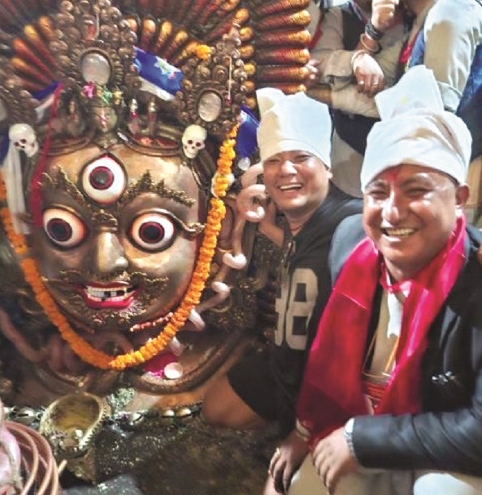 प्रतिमा स्थापना गर्नुअघि शनिवार दिउँसो ओकुबहालमा जात्रा गरेर मूर्तिकार शाक्यलाई सम्मान गरिएको थियो । स्थानीयको अपार सहयोगको कारण आफूलाई उक्त मूर्ति बनाउने आँट आएको जिकिर गर्दै मूर्तिकार शाक्यले आकाश भैरवको मूर्ति स्थापना गर्दा खुसी लागेको बताउनुभयो । प्रतिमा स्थापना भएलगत्तै अब हरेक वर्ष इन्द्रजात्रामा हाथ्वँ भैरव जात्रा मनाइने भएको छ । हाथ्वँ भन्नाले भैरवको मुखको पाइपबाट जाँड राख्ने र स्थानीयले उक्त जाँड प्रसादको रूपमा खाने प्रचलन छ ।